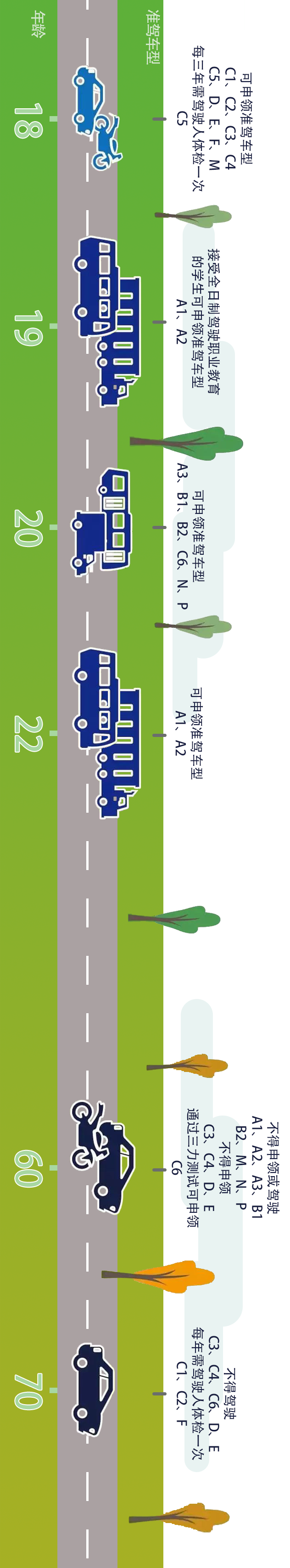 👉 对60周岁以上、70周岁以下人员,确有驾驶轻型牵引挂车需求的,通过记忆力、判断力、反应力等能力测试后,也可以申请增驾C6驾驶证。