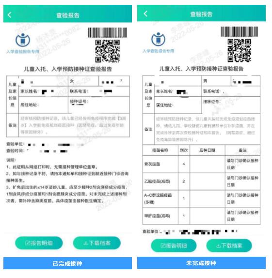 如已完成接种,则如左图所示;如未完成接种,则如右图所示。