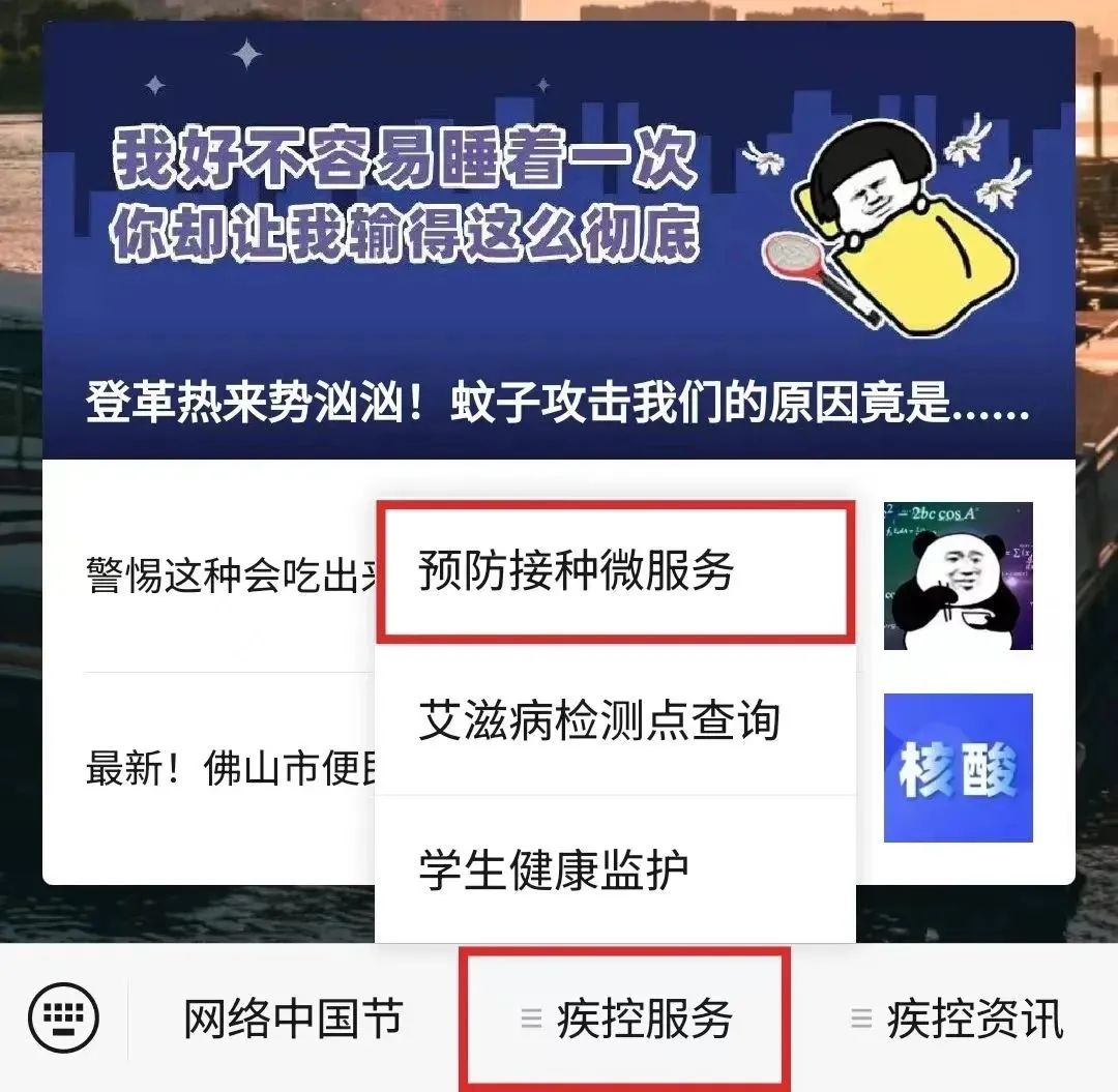 温馨提示:建议咨询当地接种门诊后再前往办理。接种门诊的联系方式可以微信搜索关注“佛山疾控”微信公众号,点击“疾控服务”——“预防接种微服务”——“接种门诊和预约方式”进行了解。)