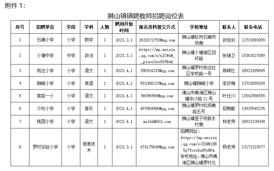 本次招聘计划共8名,具体详见下方《狮山镇镇聘教师招聘岗位表》