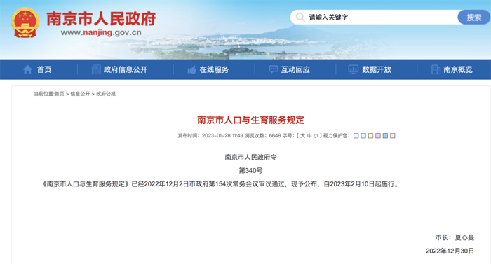 《南京市人口与生育服务规定》自2023年2月10日起施行,其中对各类假期进行了明确规定,包括依法办理结婚登记的夫妻,可以享受婚假十五天。