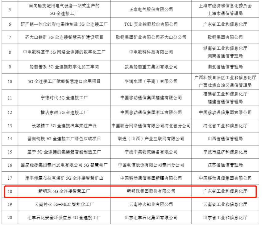 工业和信息化部日前公布2022年工业互联网试点示范企业名单,新明珠集团上榜工厂类试点示范企业“5G全连接工厂试点”,成为广东省内三家获此殊荣的企业之一。
