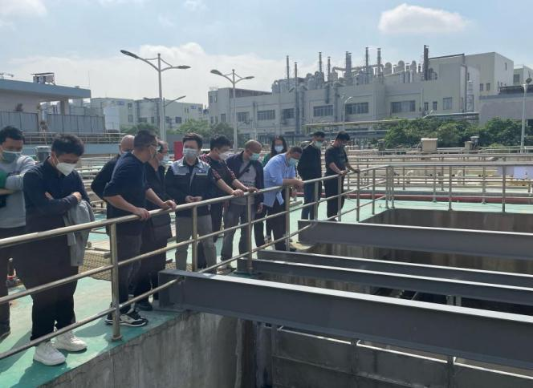 考察组实地察看东莞市规划七大环保专业基地之一的豪丰(麻涌)环保专业基地,深入了解基地内电镀行业的治污设施工艺、智慧监控设备联网的应用和生产管理的做法与成效,并与东莞市生态环境局交流生态环境监管工作。