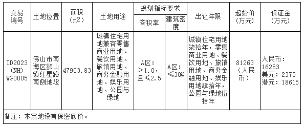 佛山市南海区国有建设用地使用权网上挂牌出让公告