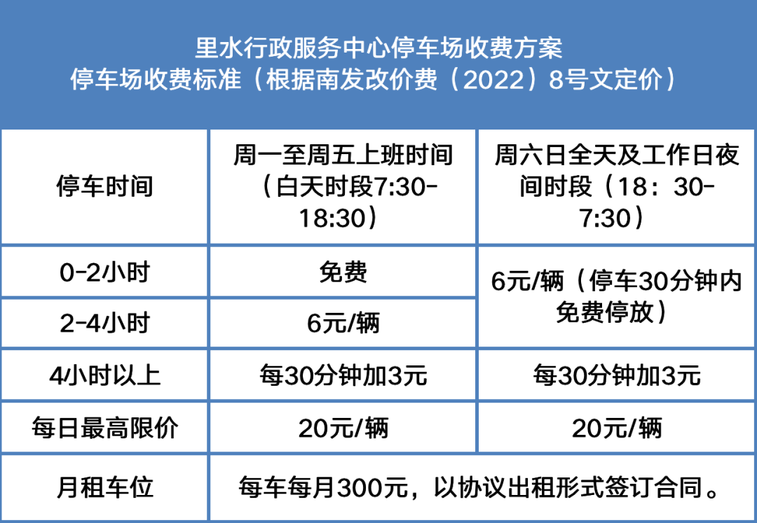 Q:里水君,想问下里水城区范围内有什么位置可以停车?停车收费如何?