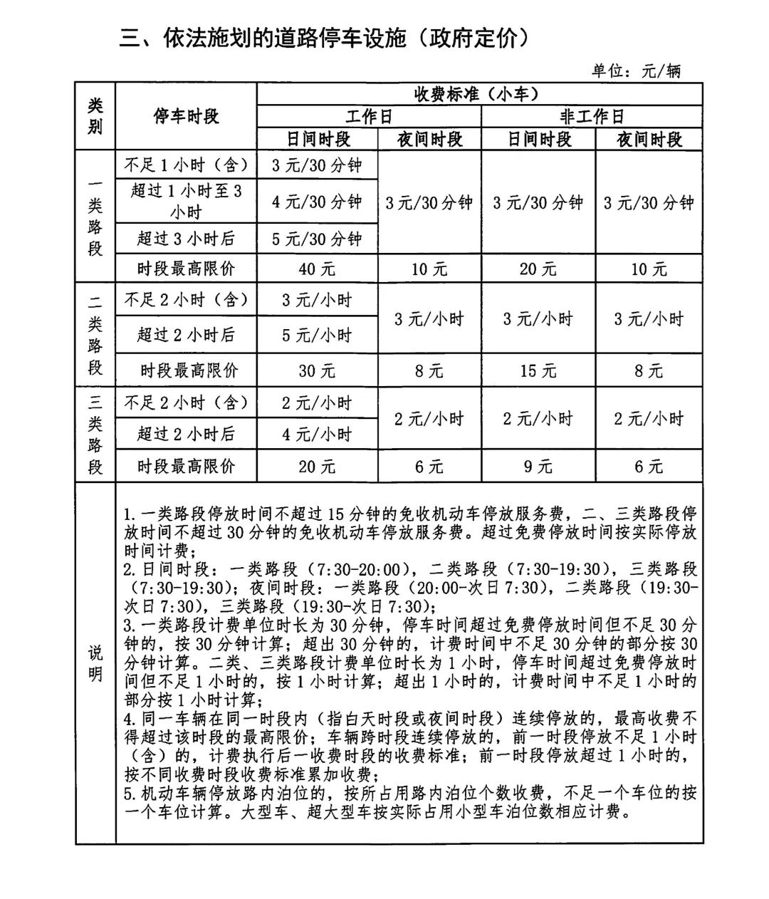 里水市政路段停车位:朝阳路、振兴路、东升路停车收费标准参考二类路段类别,白塔工业大道(紫金路)及月池西路停车收费标准参考三类路段类别。