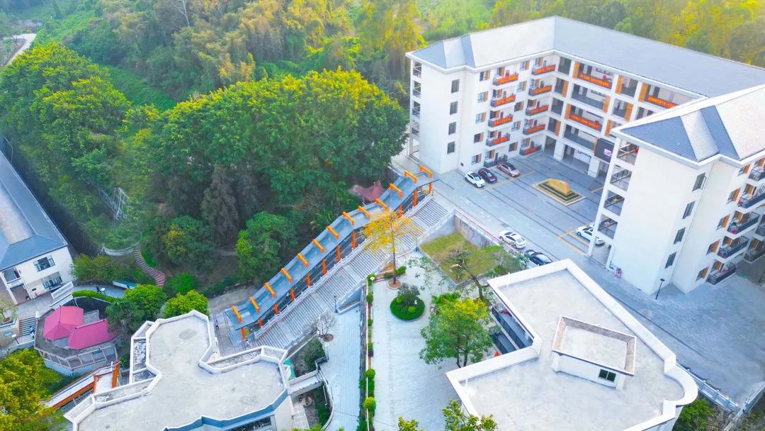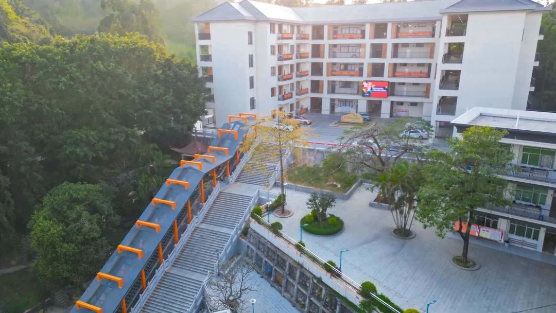 发布君了解到,电梯是2022年开始建设的,建设时长约一年,将南海中学的校训广场、文化长廊、守望广场等几个校园地标建筑连接起来。电梯的尽头是高三教学楼——望远楼。