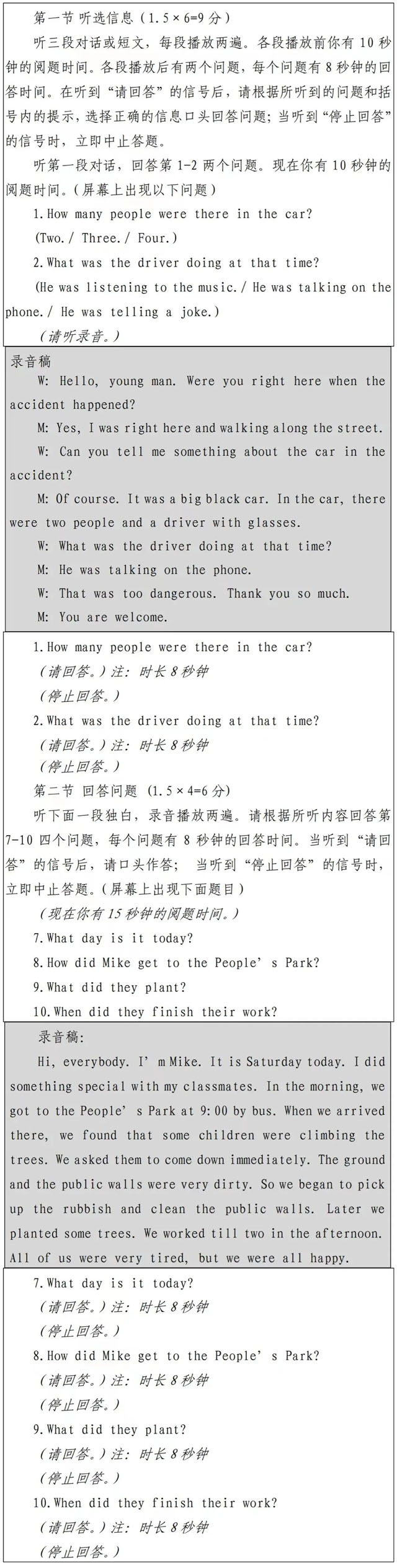 考生能听懂发音清晰、语速正常的简单对话或短文,获取关键信息。