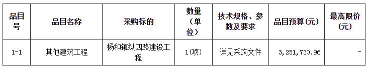 采购包1(杨和镇纵四路建设工程):采购包整体专门面向中小企业采购,供应商应为中小微企业、监狱企业、残疾人福利 性单位。(提供《中小企业声明函》或属于监狱企业的证明材料或《残疾人福利性 单位声明函》)(本项目采购标的对应的中小企业划分标准所属行业为:建筑业)。需要落实的政府采购政策:《政府采购促进中小企业发展管理办法》(财库〔20 20〕46号)、《关于政府采购支持监狱企业发展有关问题的通知》(财库〔2014〕 68号)、《关于促进残疾人就业政府采购政策的通知》(财库〔2017〕141号)、《 关于环境标志产品政府采购实施的意见》(财库[2006]90号)、《节能产品政府 采购实施意见》的通知》(财库[2004]185号)、《财政部发展改革委生态环境 部市场监管总局关于调整优化节能产品、环境标志产品政府采购执行机制的通知》 (财库〔2019〕9号)、《关于印发〈商品包装政府采购需求标准(试行)〉、〈 快递包装政府采购需求标准(试行)〉的通知》等。