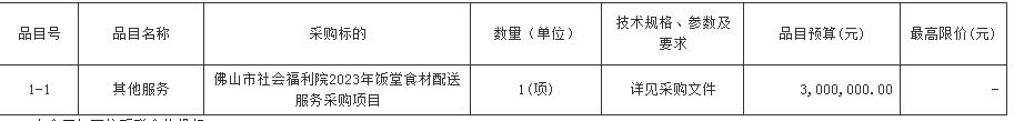 项目名称:佛山市社会福利院2023年饭堂食材配送服务采购项目