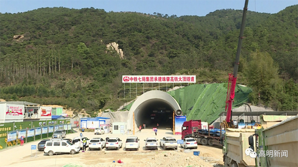 珠肇高铁高明段的隧道施工在有条不紊地进行。