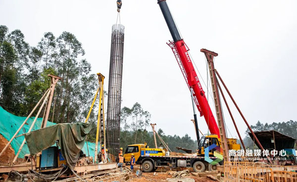 珠肇高铁高明段的项目工地上进行桩基施工。