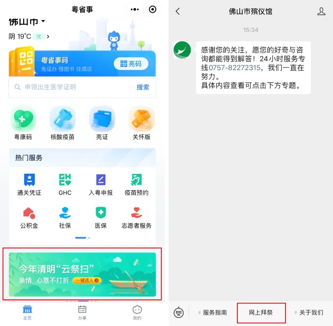 “佛山市殡仪馆”微信公众号的“网上拜祭”