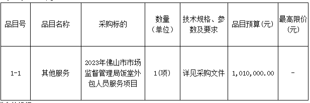 佛山市市场监督管理局饭堂外包人员服务项目公开招标公告