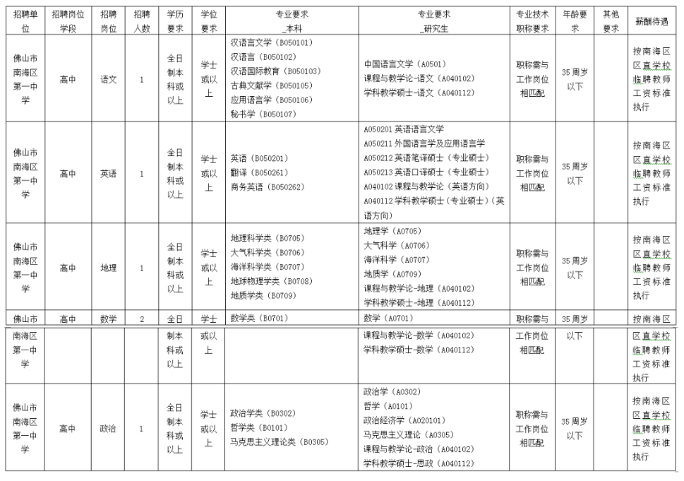 根据学校发展计划,配合教育教学工作实际需要,南海第一中学拟新增公开招聘语文、英语、地理、政治、数学学科临时专任教师共6名。