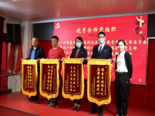 (图:黎颖研为受到嘉许的党组织代表授奖旗)