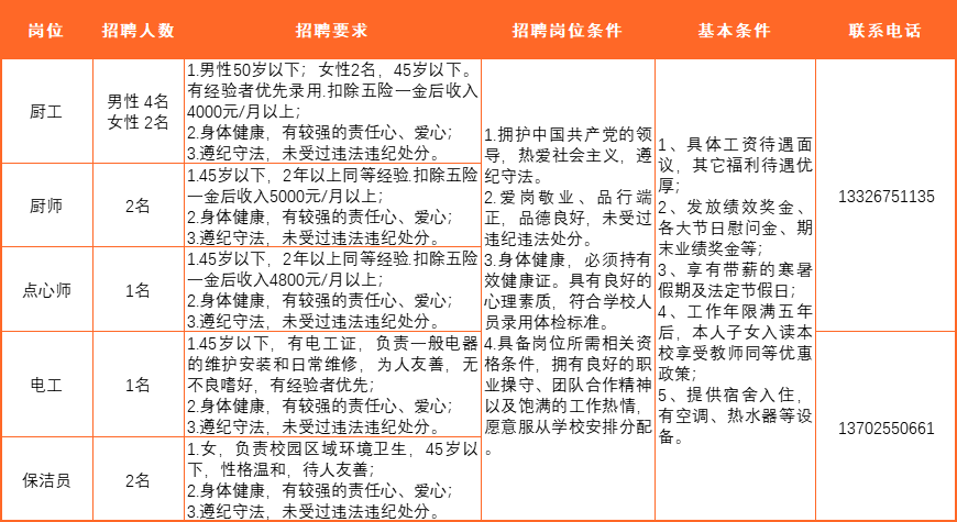 5、应聘方式:电话联系相关岗位负责人(具体详见各岗位招聘信息联系电话)。