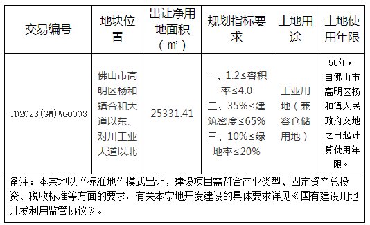 五、有意参与竞买者可于2023年2月28日后登录网上交易系统下载该地块的《佛山市高明区国有建设用地使用权网上挂牌出让文件》。