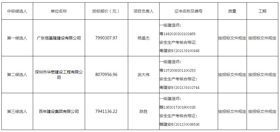 本招标项目的评标工作已经结束,评标委员会按招标文件规定推荐了本项目中标候选人,现按有关规定将推荐的中标候选人情况进行公示,公示期从2022年03月30日0时至2022年04月02日0时止,具体情况如下: