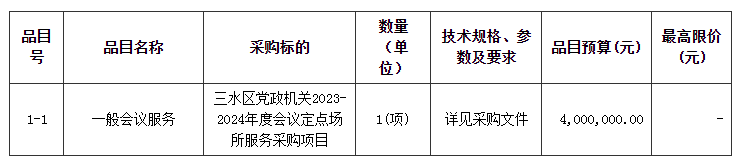 项目名称:三水区党政机关2023-2024年度会议定点场所服务采购项目(二次)