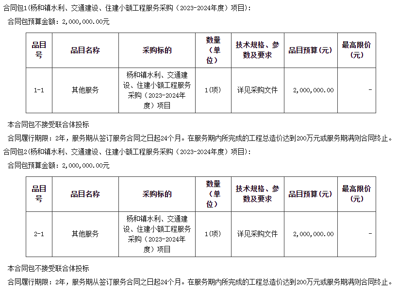 项目名称:杨和镇水利、交通建设、住建小额工程服务采购(2023-2024年度)项目