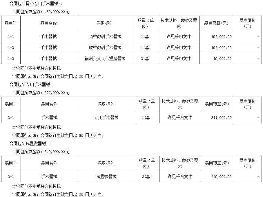 项目名称:专用手术器械等一批设备采购项目(二次)