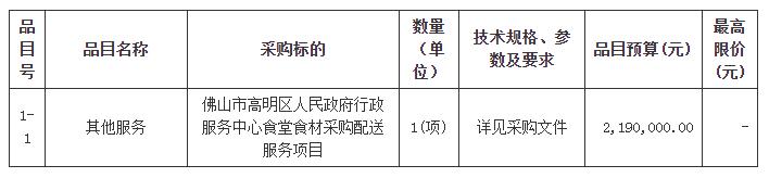 项目名称:佛山市高明区人民政府行政服务中心食堂食材采购配送服务项目