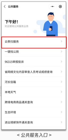 方式三:登录“粤省事”小程序后,下滑至公共服务,进入“云祭扫服务”,办理相关业务。