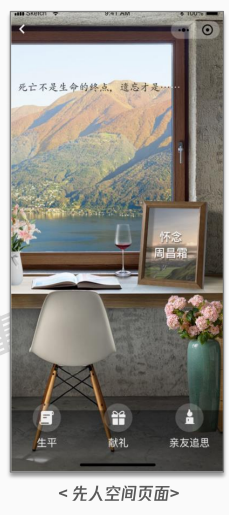 进入“逝者纪念空间”后即可查看逝者生平、为逝者献礼、亲友追思,或是分享链接与远方的亲人一起寄托哀思。