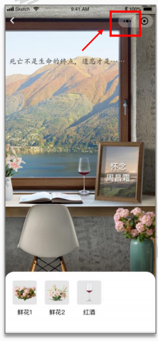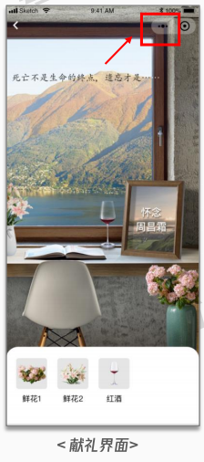 点击“献礼”即可向亲友献花、献酒表达哀念之情,点击后将会布置先人空间。