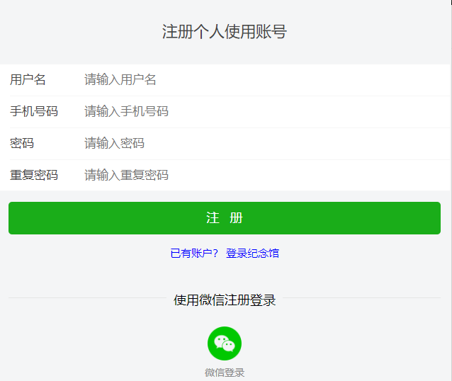 第三步:点击注册个人账号,或授权微信登录(用户名为拜祭者个人昵称)。
