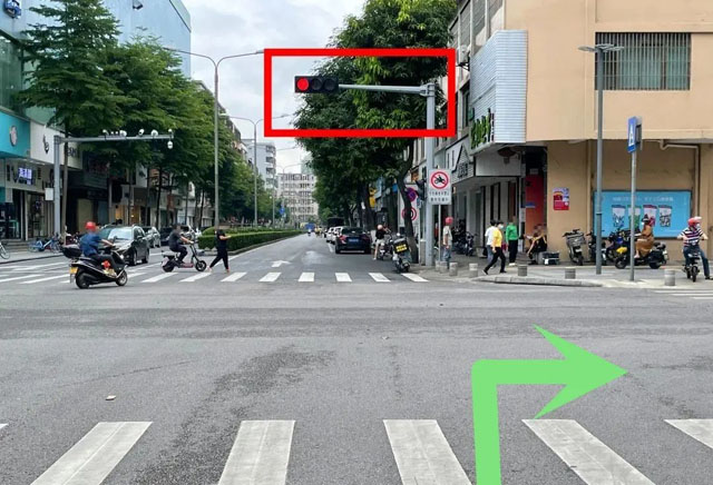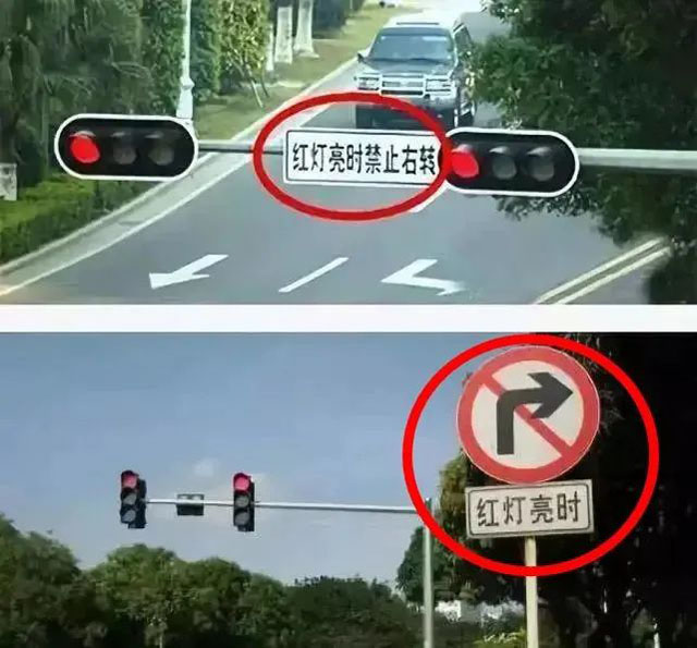 当路口有设置“红灯亮时禁止右转”标志标牌的情况下,圆屏灯红灯亮时车辆是禁止右转的,需待信号灯转为绿灯后才可右转。