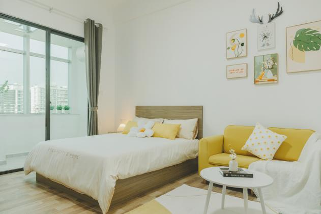 三种户型均带独立卫浴和阳台,配置全新家电家具。沙发、电磁炉、洗衣机、冰箱、空调等设施一应俱全,可实现拎包入住。