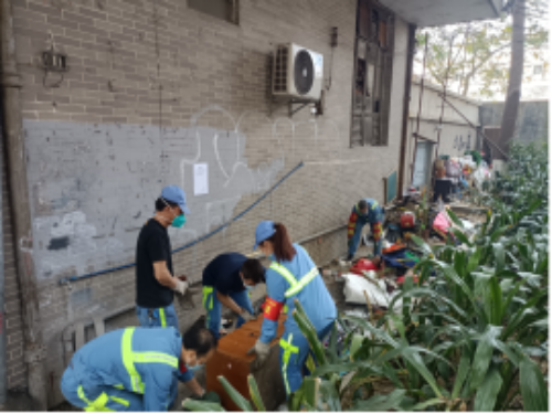 3月5日和3月6日金花街环卫站组建志愿者队伍,对蟠虬社区老旧小区的卫生死角和陈家祠社区卫生黑点开展专项整治活动,对背街小巷、街尾巷末的沉积物、枯枝枯叶进行“地毯式”清理转运,蟠虬社区清理卫生死角3处,大件废弃家私及杂物转运垃圾2车次,约1吨。陈家祠社区清理流浪汉卫生黑点1处,电动四轮八桶车3车,约3吨。