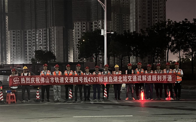 3月1日凌晨,佛山市城市轨道交通4号线一期工程4207标绿岛湖中站第二期交通疏解顺利完成,实现了科润路自禅秀路至禅港路段施工场地的围蔽,全面打开了车站基坑施工的工作面。