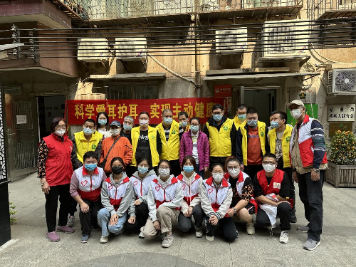 (图:志愿者在宣讲爱耳护耳保健知识)