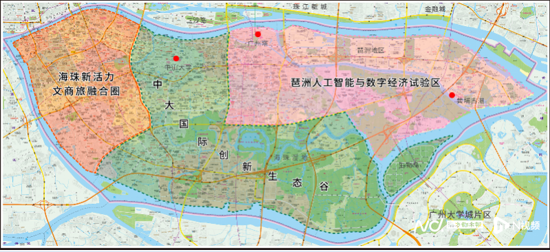 海珠区的数字与生态融合并进,并不是将其规划在同一个地方,而是分布在三个片区。当前,海珠区在西部建设海珠新活力文商旅融合圈,中部建设中大国际创新生态谷,东部建设琶洲人工智能与数字经济试验区。基于三大片区的布局,海珠区在“十四五”规划中,提出了“逐步建成有活力有魅力有竞争力的数字生态城”的目标,抓住辖区数字和生态两大明显优势,是广州唯一一个将数字与生态结合来定位自身发展目标的行政区。
