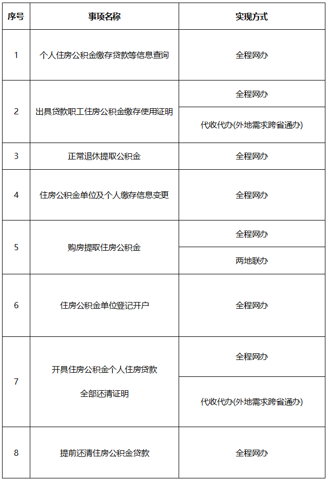 根据《住建部和城乡建设部办公厅关于做好住房公积金服务“跨省通办”工作的通知》,为进一步推进住房公积金服务“跨省通办”,管理中心根据国家相关规定要求,通过全程网办、代收代办、两地联办等方式完成“跨省通办”工作。目前国家要求实现“跨省通办”的8个服务事项工作已完成。