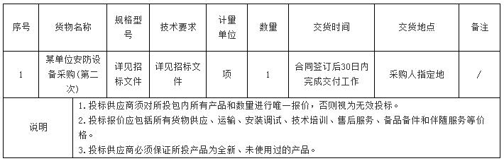 一、 项目名称:某单位安防设备采购(第二次)