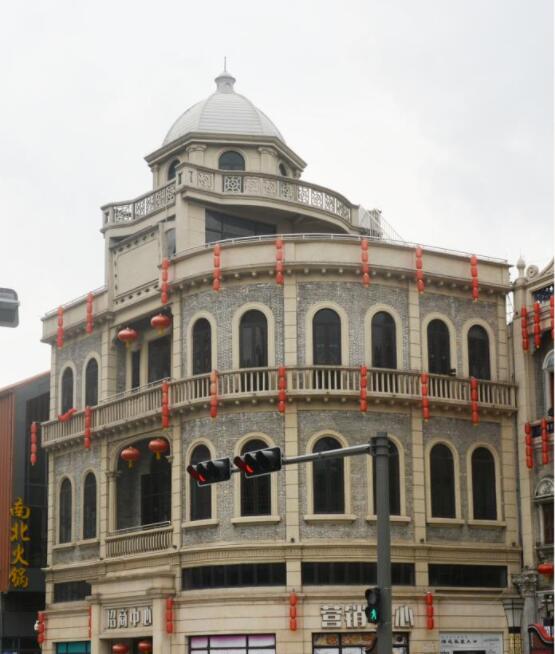 益兴花纱行旧址位于禅城区祖庙街道汾宁路52号,始建于民国十九年(1930年),占地面积为105.56平方米,属商住建筑,西洋风格浓郁。建筑平面呈半圆形,局部四层,顶层阁楼加穹顶尖屋面,外墙为水磨青砖(局部石材),半圆形高窗,欧式线脚,预制条形护栏。建筑墙面已翻修,内部有修缮。益兴花纱行有90多年历史,是当时佛山有名的经营棉纱生意的纱行。