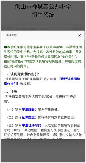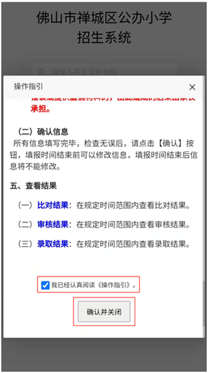 认真阅读《操作指引》,点选文末“我已经认真阅读《操作指引》”并点击“确认并关闭”。