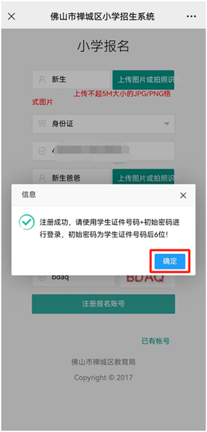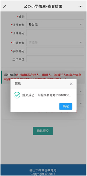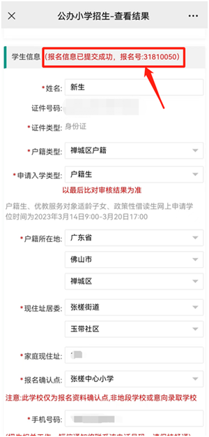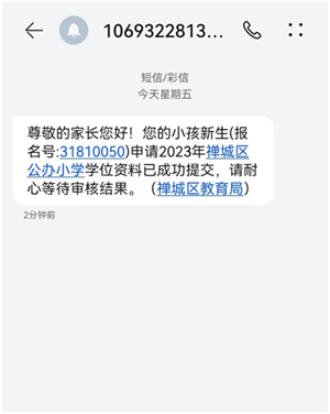 04、随后,家长手机会收到由“禅城政务”发出的报名确认短信。网上报名完成!