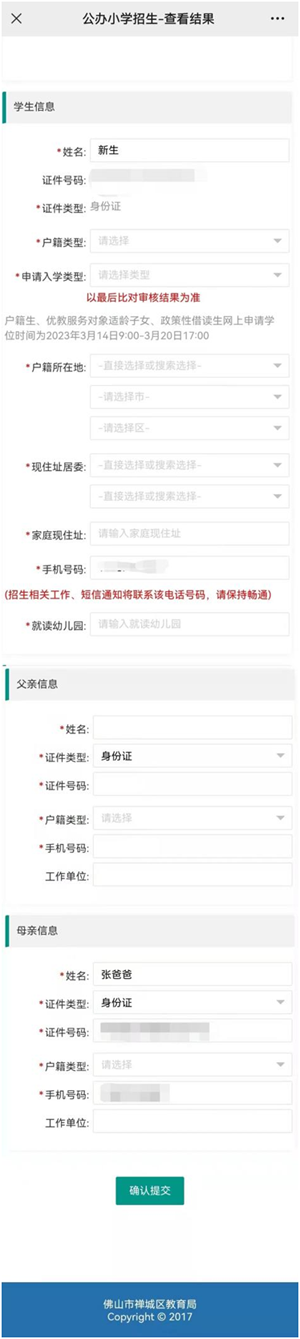 (1)“户籍类型”选“禅城区户籍”且“申请入学类型”选“户籍生”的,需要填报居住信息。