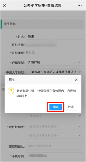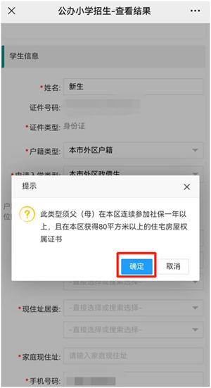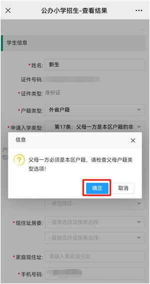 (5)申请入学类型选择“政策性借读生第17条”:父母一方必须是本区户籍。