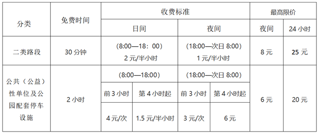 夜间(18:00 时-次日 8:00 时):1 元/半小时,夜间最高限价8元。