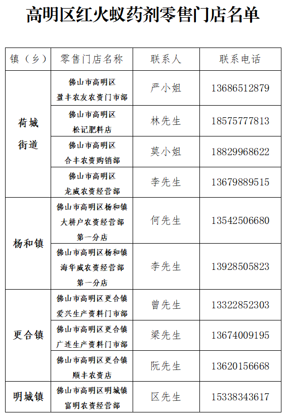 “目前红火蚁防控工作主要由各镇街、村(社区)统筹落实。”区农业农村局相关工作负责人表示,区农业农村部门会定时向基层免费派发红火蚁防治药剂,并通过开展培训等方式指导各村居发现和灭杀红火蚁。此外,全区目前在各镇街共设有10个红火蚁药剂零售点,供市民自行选购使用。