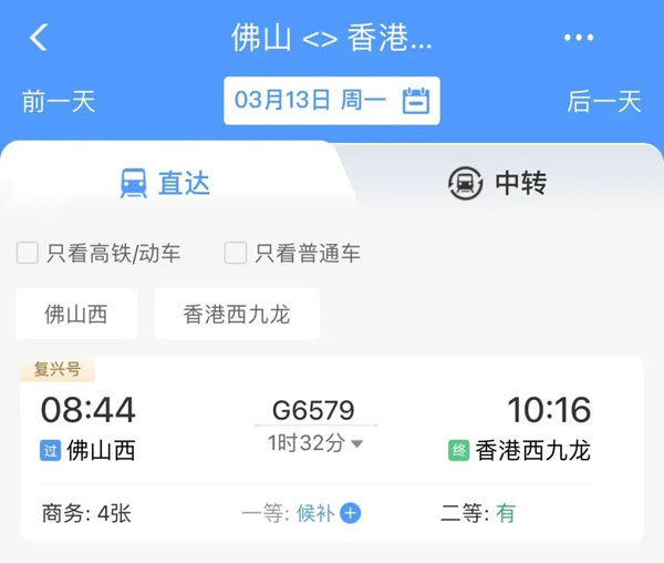 3月11日起,高铁香港段恢复广东省长途列车服务,包括往来西九龙站至潮汕和肇庆东站,途径佛山西等11个中途站,进一步满足内地与香港间旅客出现需求。这意味着狮山街坊又可以家门口坐高铁,1.5小时直达香港。