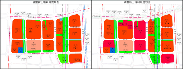另外,片区的02-02、02-05a、02-06a、02-08a、02-09、02-11a、02-20这6个地块性质由商务用地调整为商业用地兼容商务用地及娱乐康体用地。