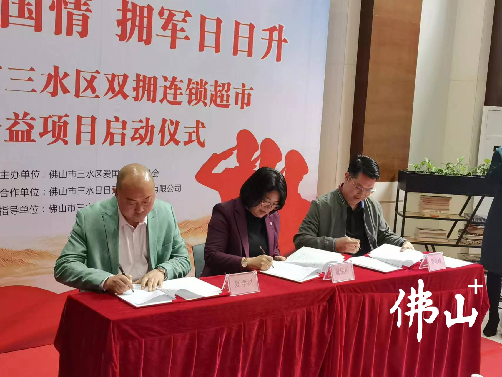 3月13日,三水区举行“悠悠家国情 拥军日日升”双拥连锁超市公益项目启动仪式,进一步深化双拥工作,拓展全区退役军人及其他优抚对象优待证的使用范围,丰富优待项目和内容,增强优待对象的幸福感和获得感。据悉,该项目系佛山全市首个双拥连锁超市公益项目。