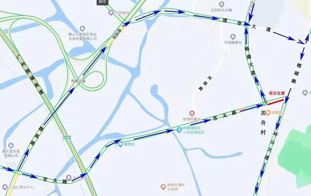 (2)从锦湖大道往羔舟村方向的车辆,可以绕行理学大道和锦湖路。
